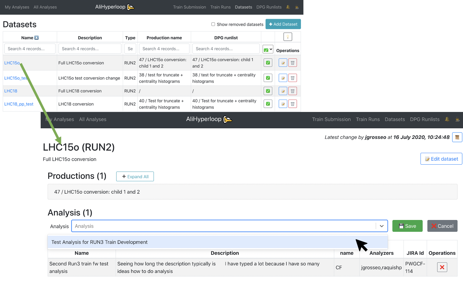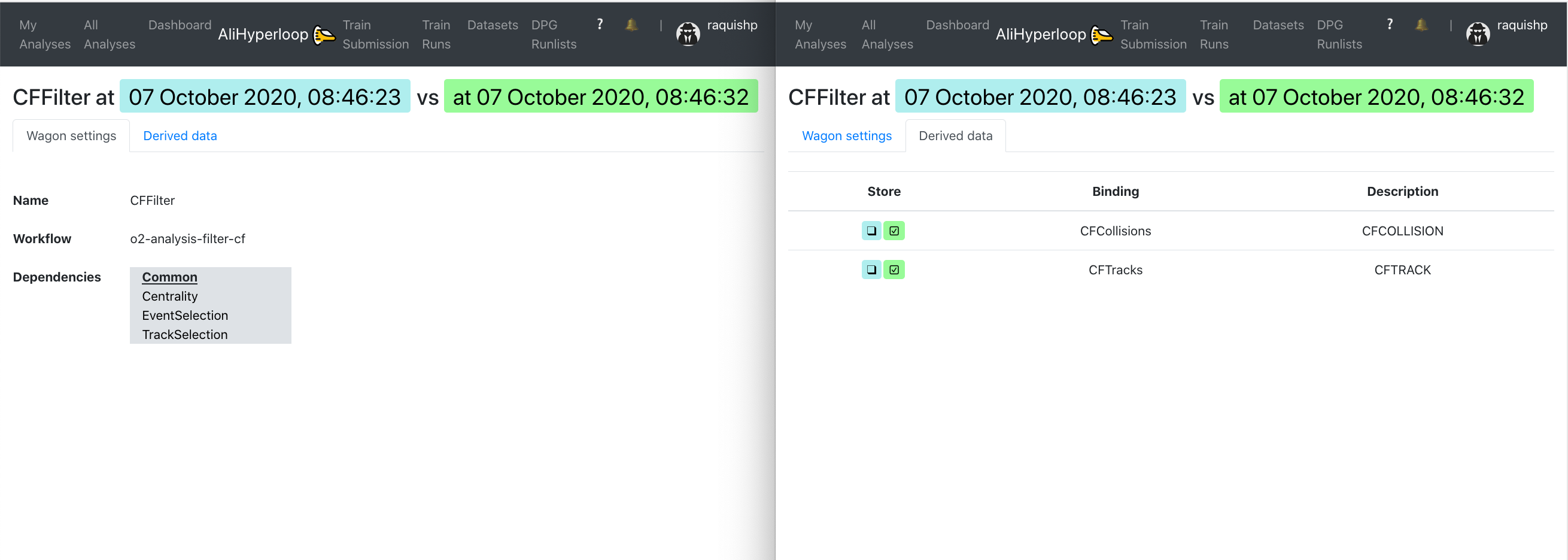- The train run detail can be accessed by clicking on the TRAIN_ID, or with the url https://alimonitor.cern.ch/hyperloop/train-run/TRAIN_ID.