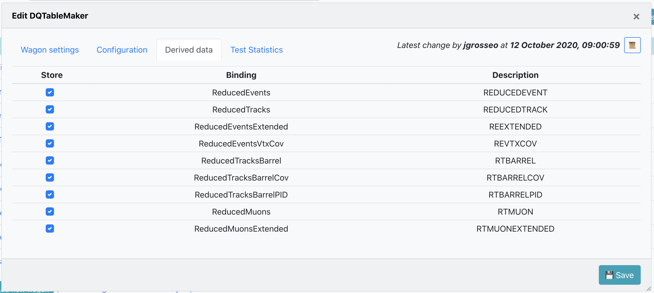 In Derived Data the tables which are produced by the task are displayed. If activated, these are saved to the output if the train is run as a derived data production.