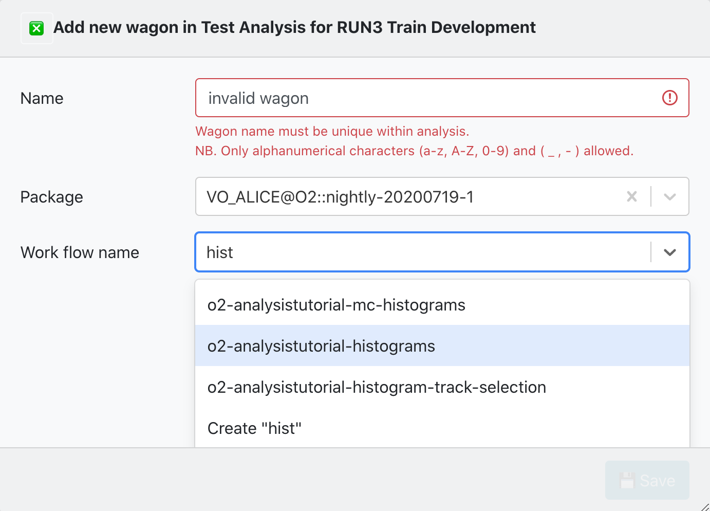 - Name: The newWagonName has to be unique within an Analysis, and it only accepts alphanumerical characters, no spaces.