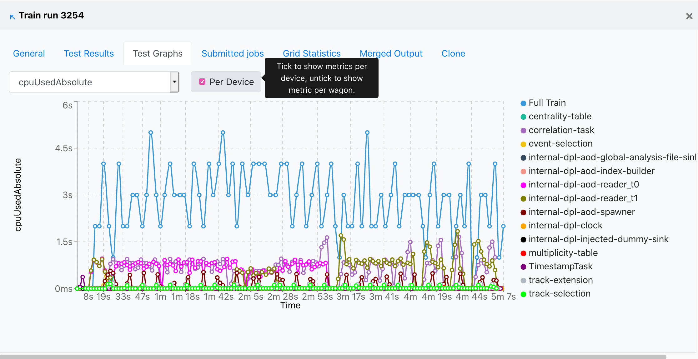 - The user can choose to plot the metric data per device, by checking the Per Device near the dropdown.